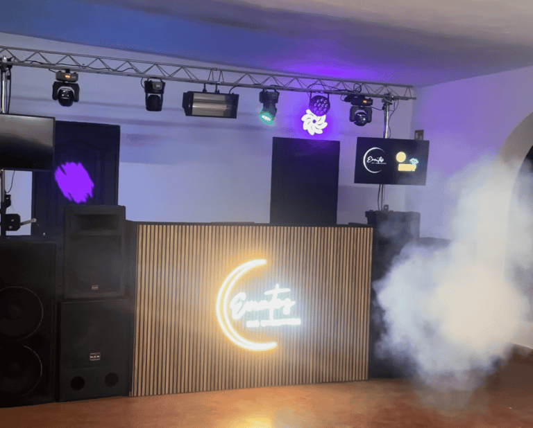 Sonido profesional, luces que crean ambiente. DJ disponible y altavoces alquilables por separado para tu comodidad.